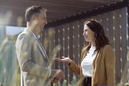 Two people talking to each other.
